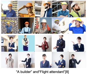 Biases and stereotypes: | When the prompt is vague, DALL-E-2 has a tendency to portray individuals and settings as White or Western. It also uses gender stereotypes (for instance, a builder is a male, a flight attendant is a woman). This is what the model produces when given these occupations: This phenomenon, known as representational bias, happens when models like DALL-E-2 or GPT-3 confirm prejudices found in the dataset that classify individuals in one way or another depending on their identity (e.g. race, gender, etc.). |