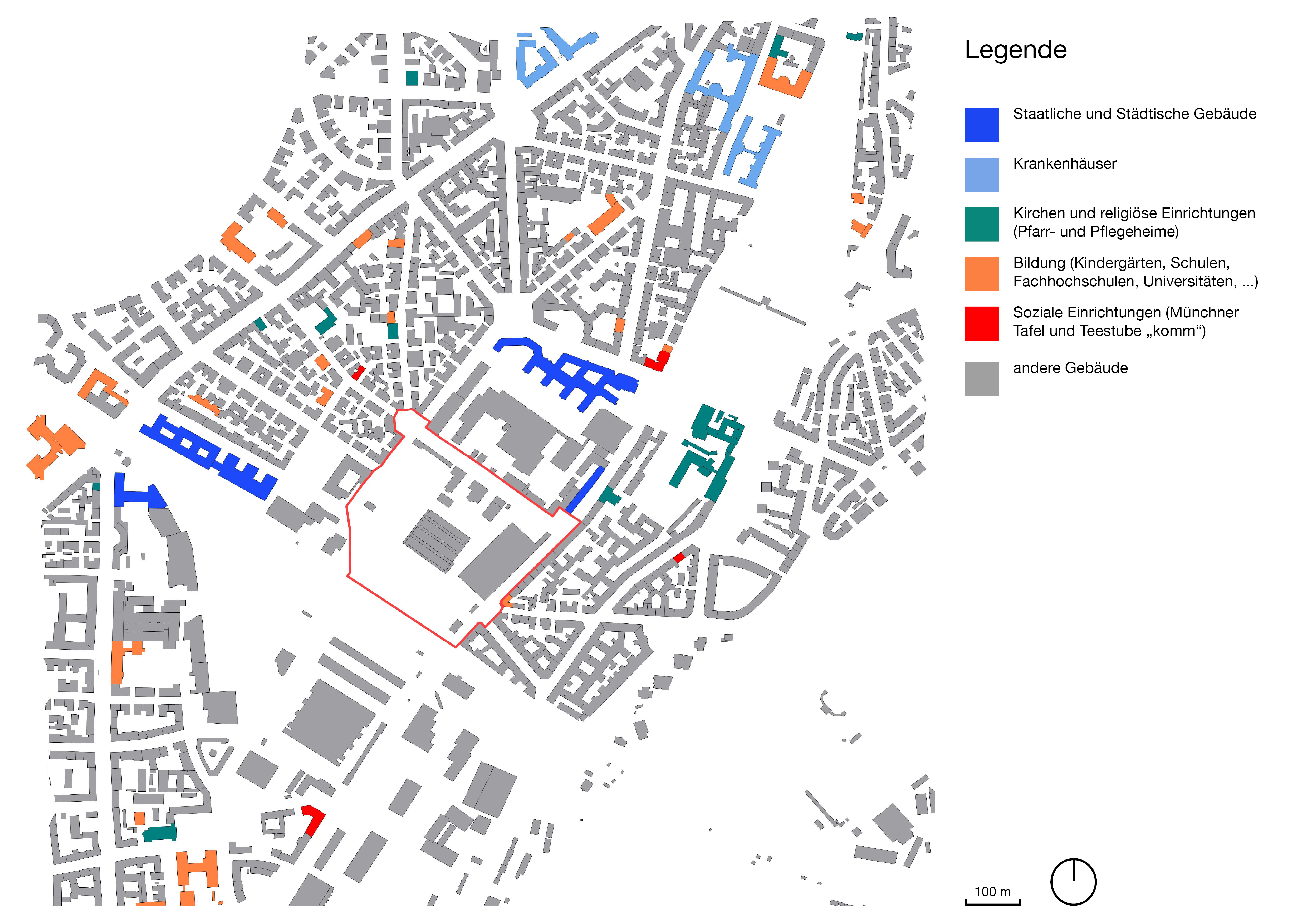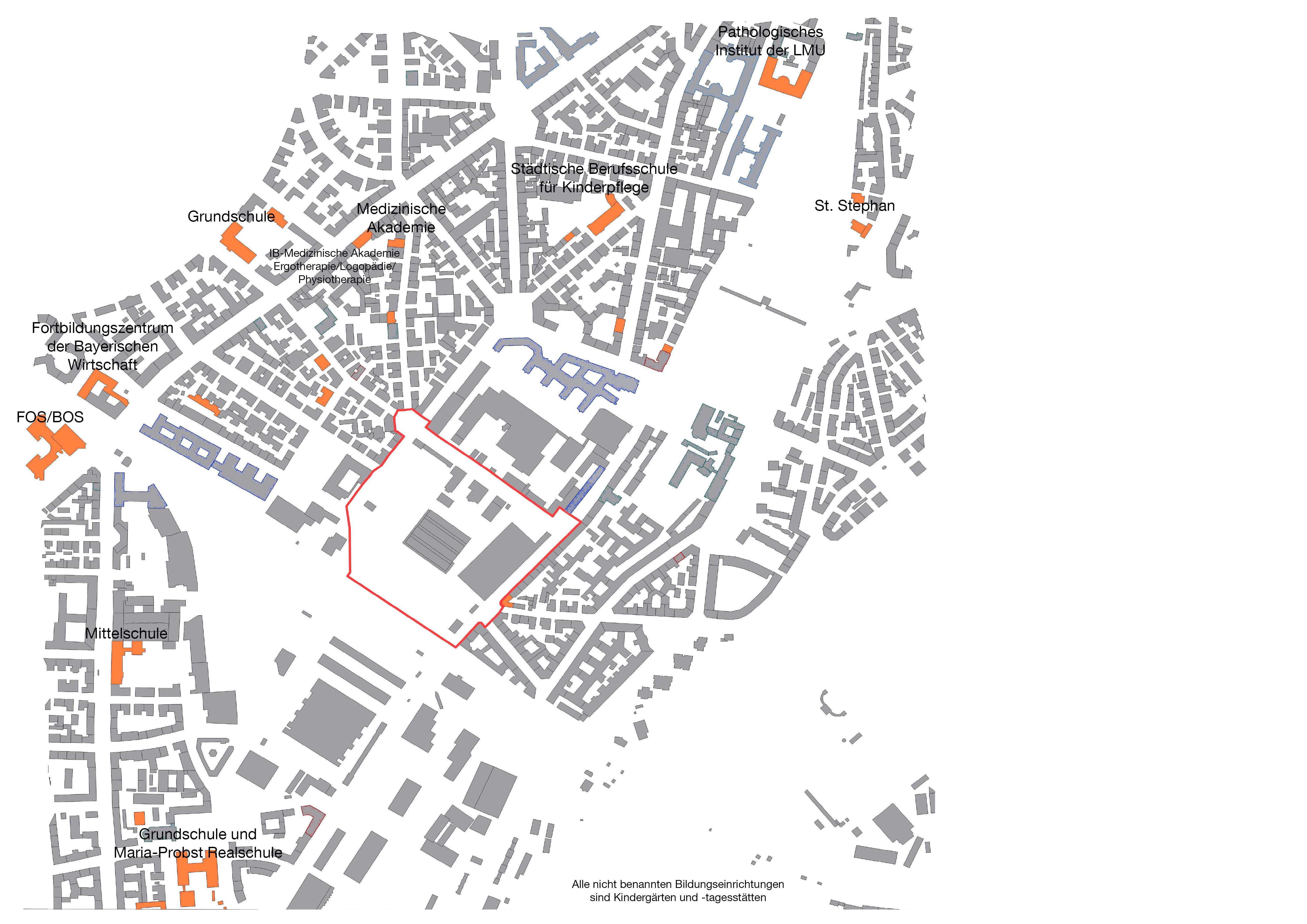 Staatliche und städtische Gebäude im Umgriffsgebiet: