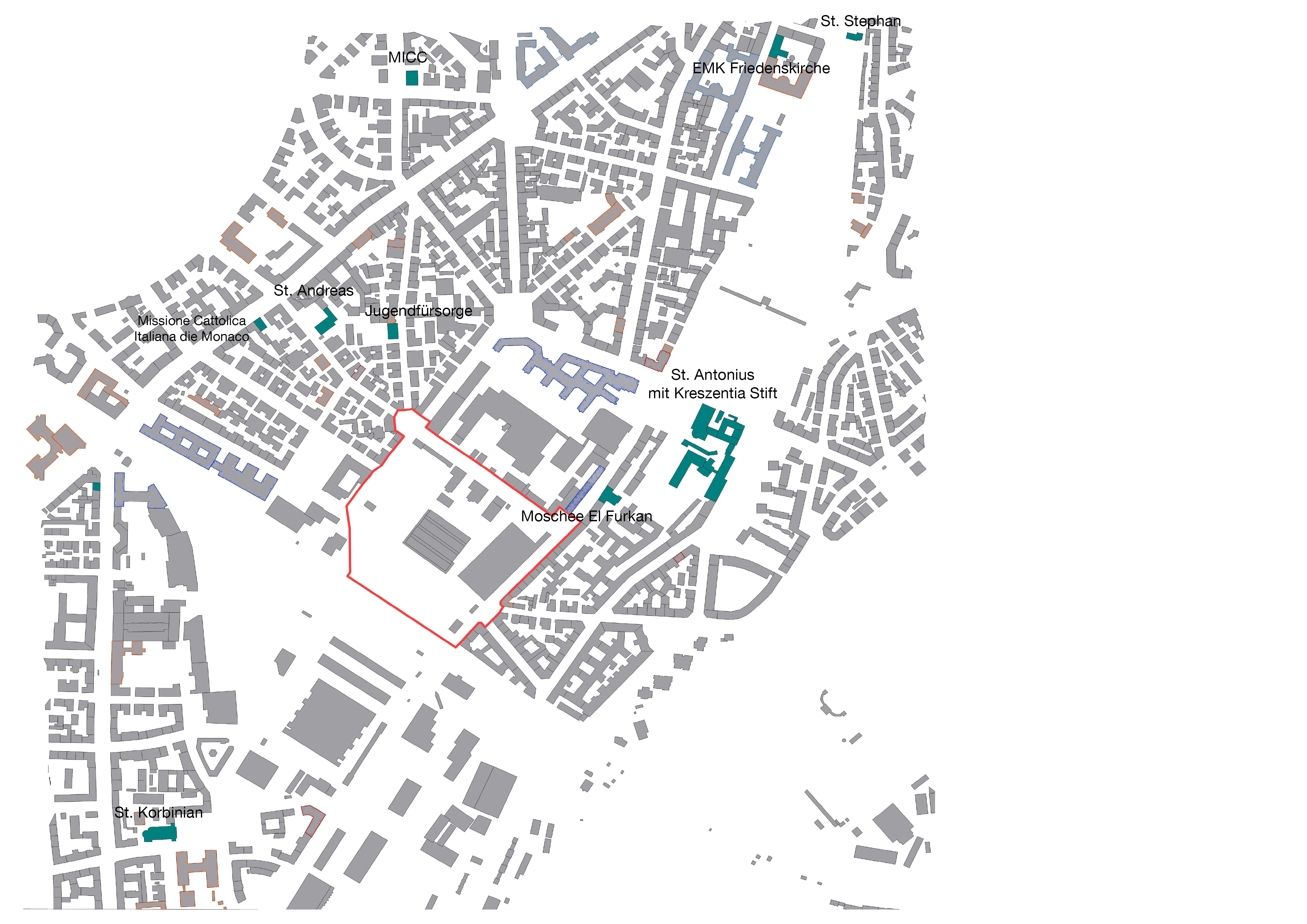 Abb. 16: Planpiktogramm religiöse Einrichtungen_Kranner_Rebecca_2020_auf Basis von Open Street Maps