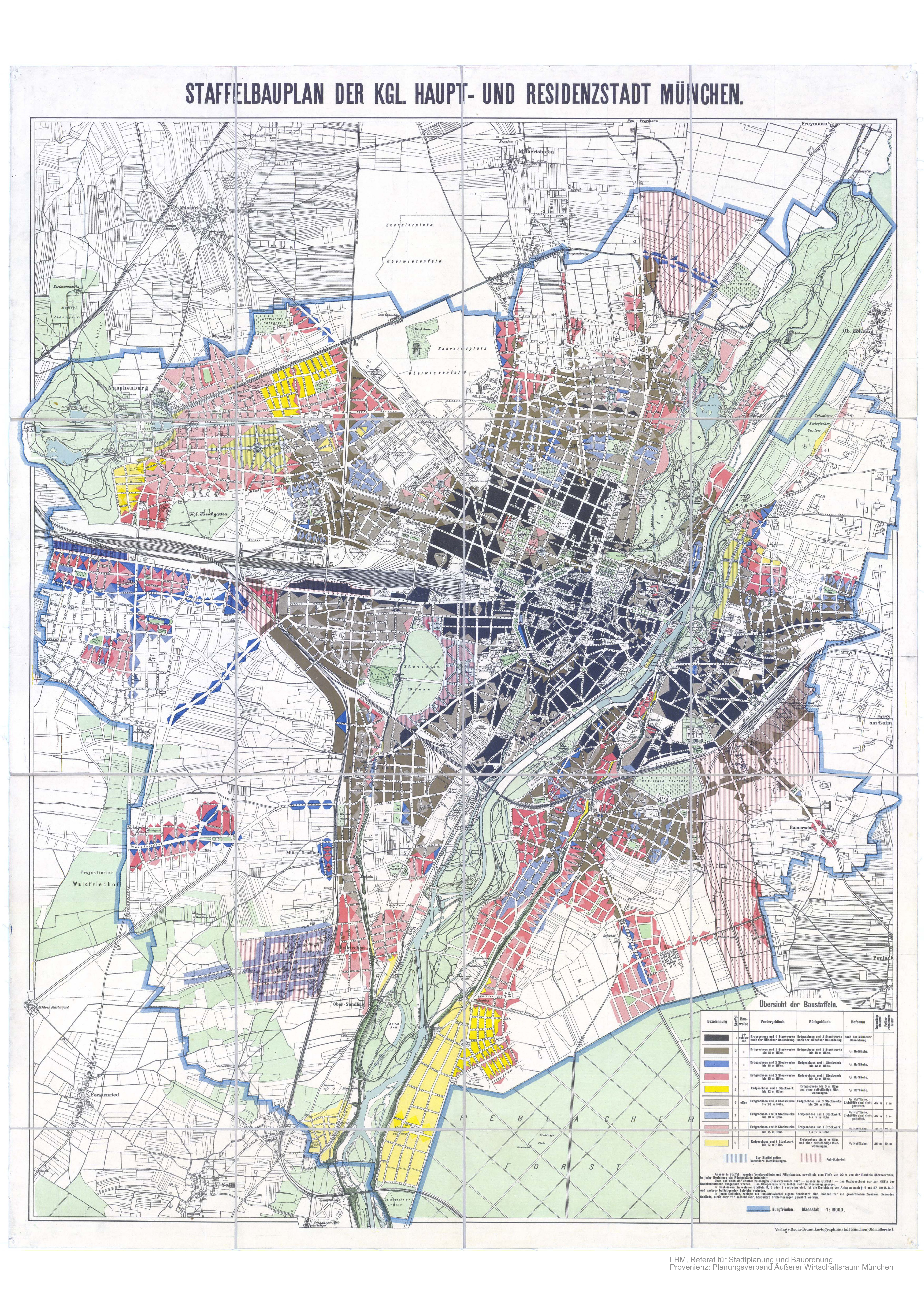 Fischer, T. (Cartographer). (1904). Staffelbauplan der kgl. Haupt- und Reidenzstadt München [Staffelbauplan]. Retrieved from https://www.muenchen.de/rathaus/Stadtverwaltung/Referat-fuer-Stadtplanung-und-Bauordnung/Stadtentwicklung/Dokumente/Zeitabschnitt2.html