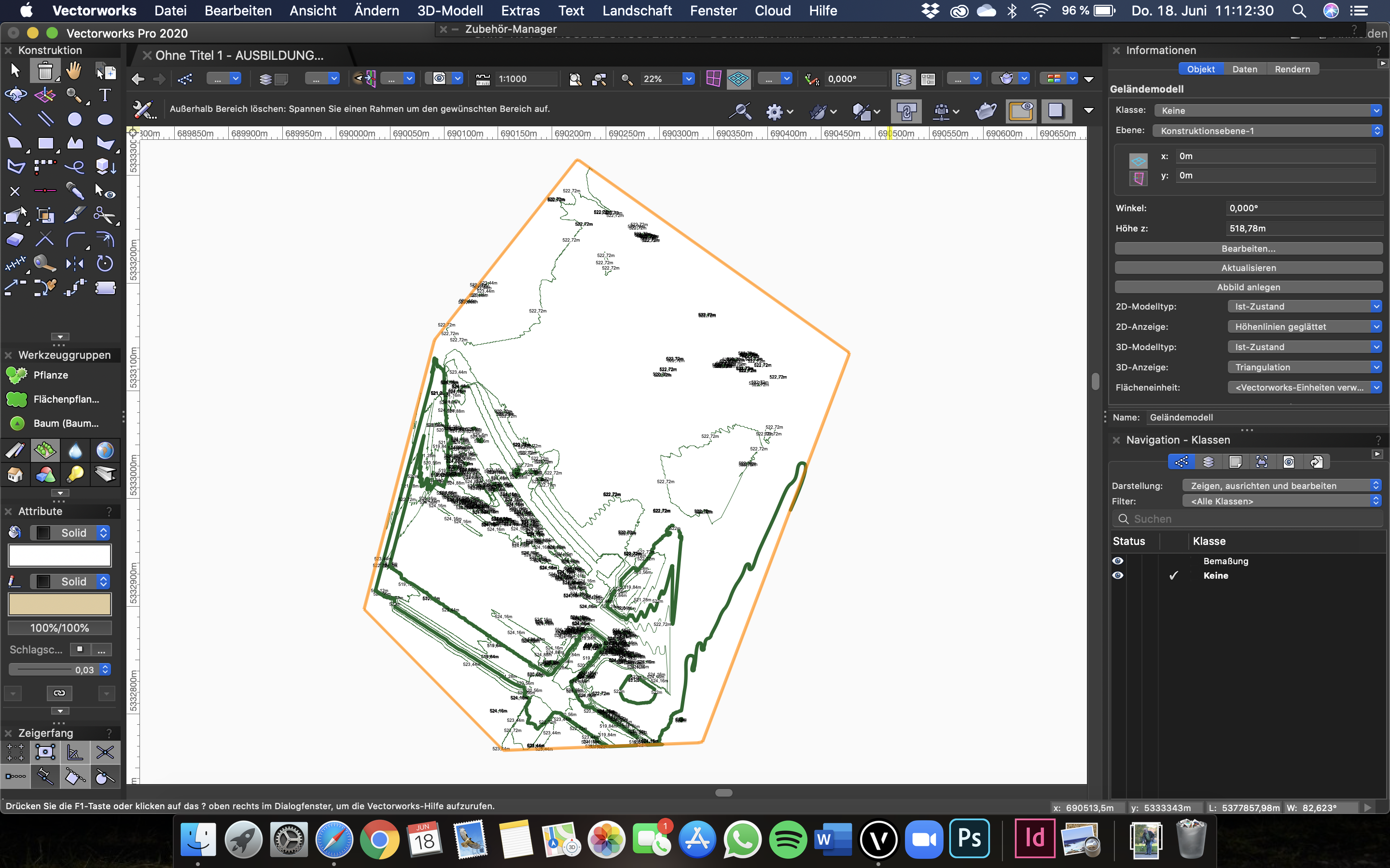 Der Bayernatlas war leider relativ enttäuschend zum ersten Mal nach vielen gemeinsamen Semestern. Aber manchmal ist das in Beziehungen jeglicher Art so. Man lebt sich vielleicht auseinander oder stellt einfach immer noch zu hohe Erwartungen an den anderen. Naja wie auch immer.. Vectorworks war zum Glück da, um mir weiter zu helfen. Ich hoffe, dass meine Geländemodellierung jetzt so stimmt, denn dann würde mein Entwurf besser aufgehen.