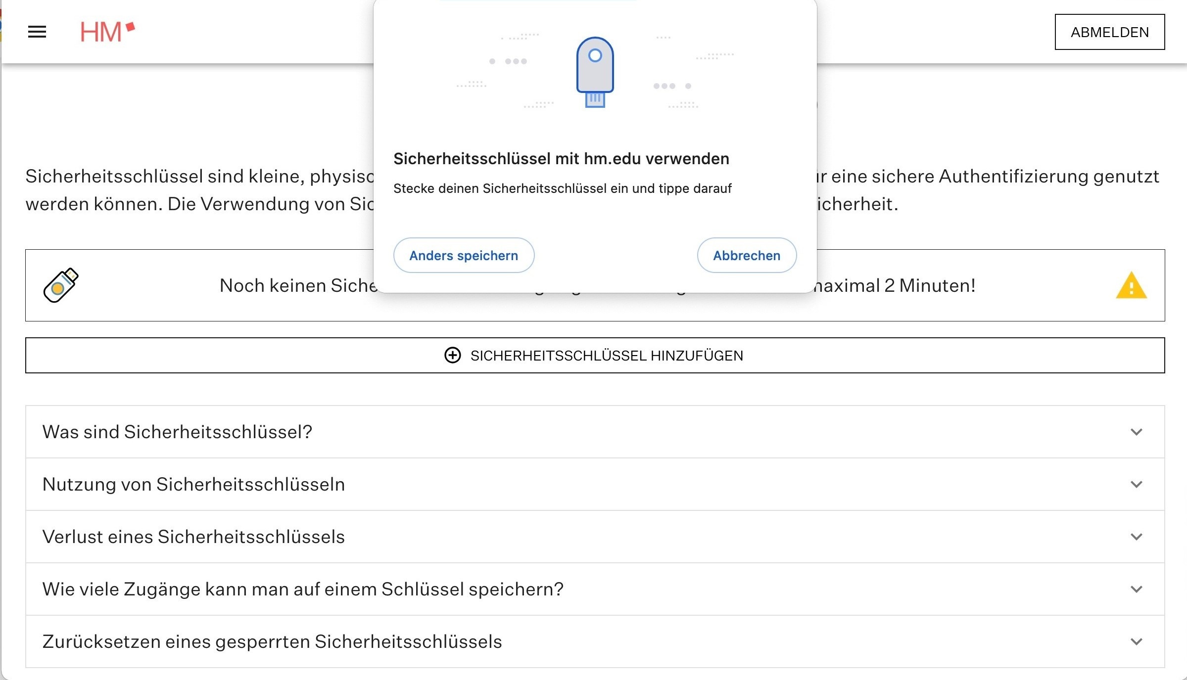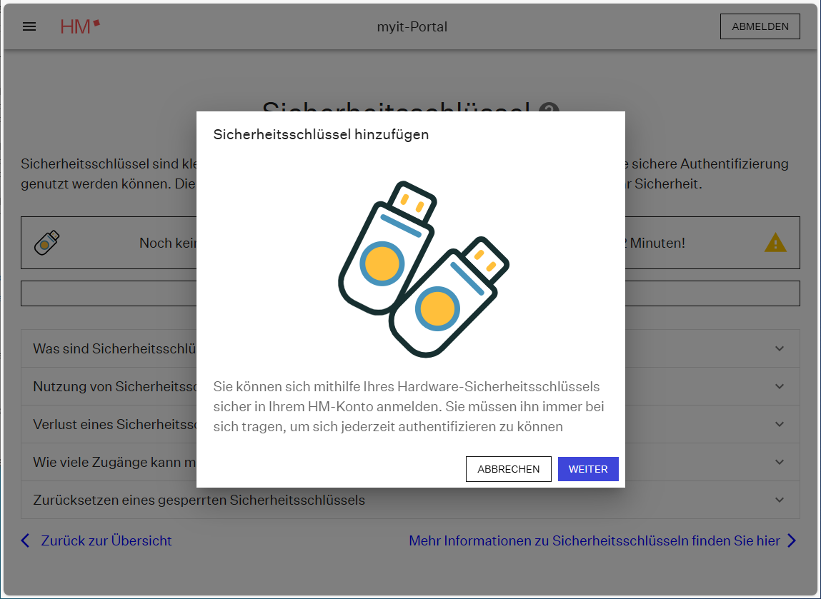 2. Klicken Sie auf "Sicherheitsschlüssel hinzufügen" |