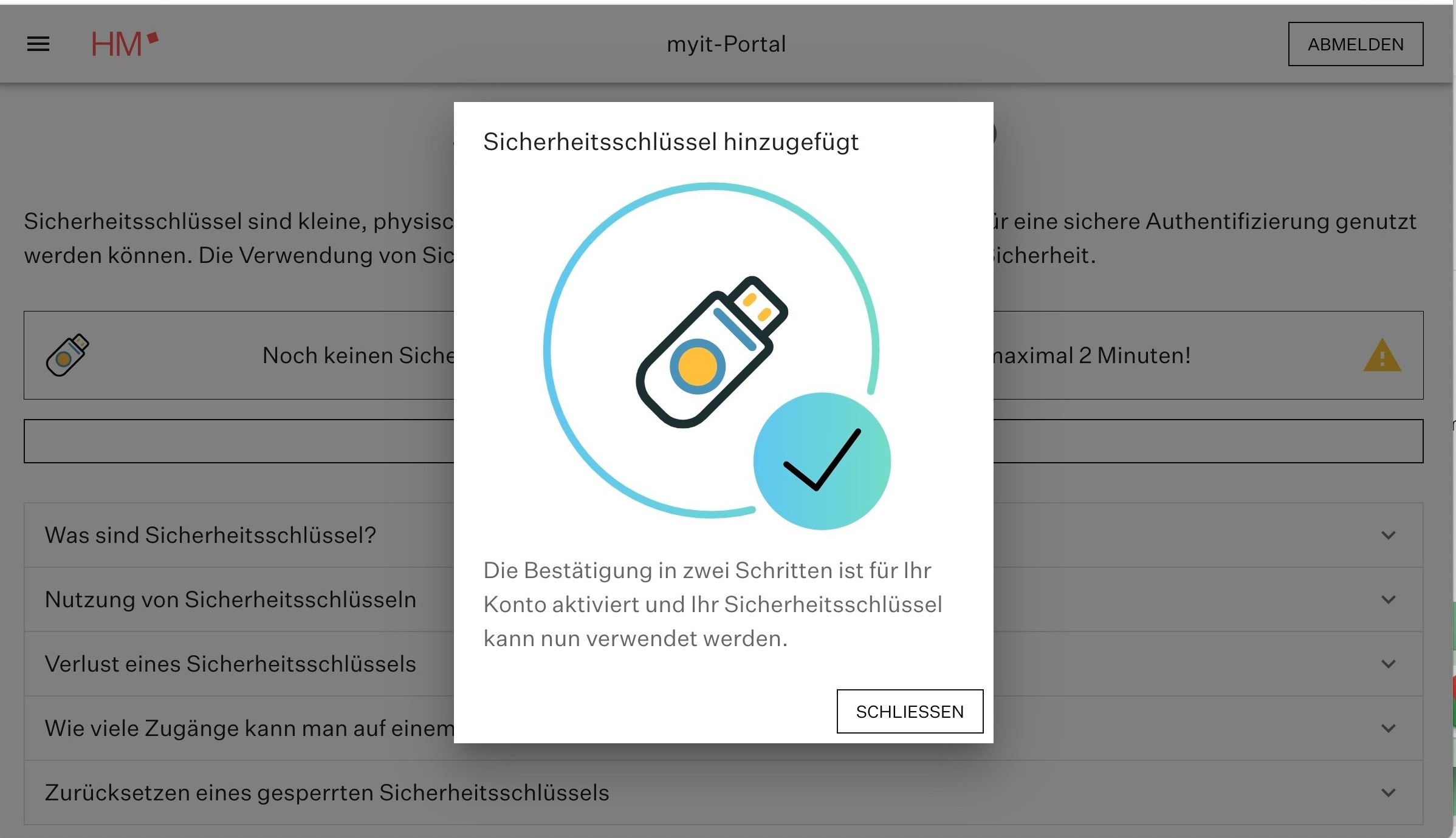 5. Sicherheitsschlüssel einstecken und berühren. |