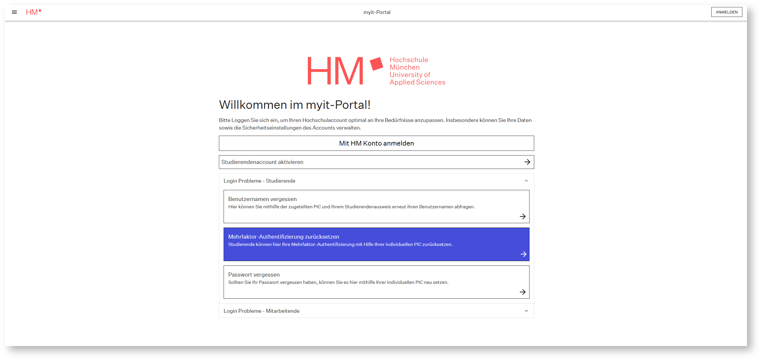 Eröffnen Sie ein Support-Ticket bei der IT-Abteilung der Hochschule München.