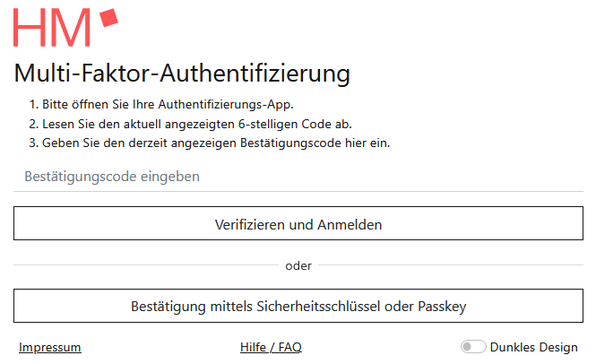 5. Anschließend werden Sie dazu aufgefordert, sich mit dem Authentifizierungsfaktor anzumelden, den Sie in Ihrem HM-Konto bereits eingerichtet haben.