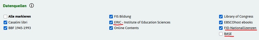 Nicht alle Bibliothekskataloge sind zu modernen Discovery-Systemen aufgerüstet und integrieren in ihr Suchsystem auch bereits bibliographisch unselbstständig erschienene Literatur wie Aufsätze aus Zeitschriften oder Beiträge aus monographischen Sammelwerken. Für eine, orientierende Suche und Zitationsanalyse ist Google Scholar eine einfache Ergänzung zum Bibliothekskatalog der eigenen Einrichtung. Google Scholar verfügt aber über nur wenige präzise Filtermöglichkeiten und unterliegt keiner Qualitätskontrolle. Es ist daher von Vorteil, die wichtigsten fachbibliographischen Datenbanken seines Fachgebietes zu kennen oder zu wissen, wo man wie findet. Datenbanken wie JSTOR oder ERIC sind ebenso wie Google Scholar frei verfügbar, doch der Weg vom Literaturnachweis zum Dokument selbst führt oft nur über eine Datenbanklizenz einer Bibliothek. Im Folgenden sind daher die wichtigsten Plattformen für eine ergänzende Literaturrecherche zum Katalog der eigenen Einrichtung zuammen gestellt: