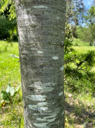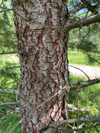 Die Rinde der Jungpflanzen ist glatt und grau-grün. Im Alter reißt diese längs auf und erscheint nun dunkelgrau- bräunlich. Um den Waldbränden ihrer Heimat widerstehen zu können wird die Binde bis zu 4,7 cm dick und im Extremfall bis zu 19 % des Stammvolumens einnehmen.
