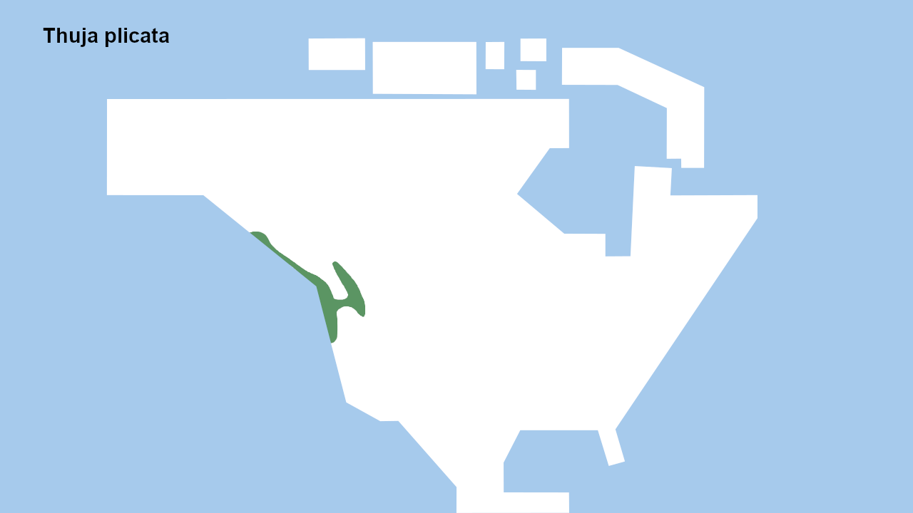 Das natürliche Verbreitungsgebiet der T. plicata ist in der Küstenregion Nordamerikas. Von Süd-Alaska, in West-Kanada und im Nordwesten bis in den Westen der USA. In Europa wurde die Art im 19.Jahrhundert eingeführt.