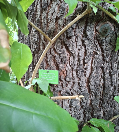 Die Rinde ist am Jungbaum noch glatt, bildet aber mit steigendem Alter eine rissige, schuppige dunkelgraue Borke.