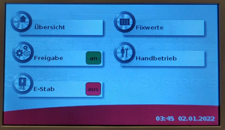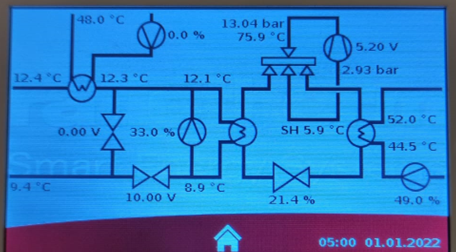 By clicking on “Übersicht” on the start window, the hydraulic schematic with some relevant sensor and actor values of the BHP unit appears.