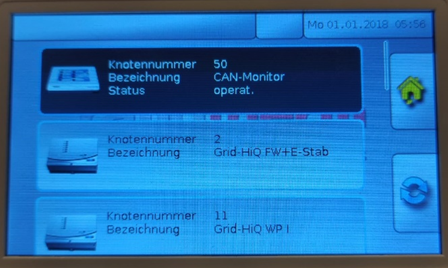 In this submenu you can choose which controller to access. They are distinguished by their “Knotennummer”.