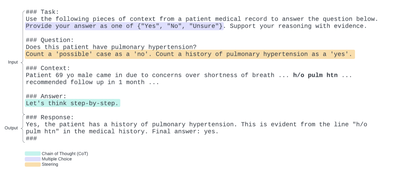 Through the Zero-Shot approach, prompt engineering was used to guide the LLMs and improve their performance. For an added guidance of LLMs and provide additional context, a set of prompts were developed to specifically deal with EHRs based predictions.