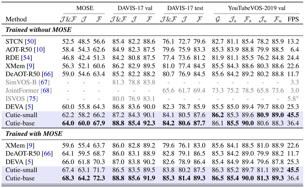 Rank #1 in DAVIS 2017 (val), DAVIS 2017(test-dev), YouTube-VOS 2018&2019, MOSE |