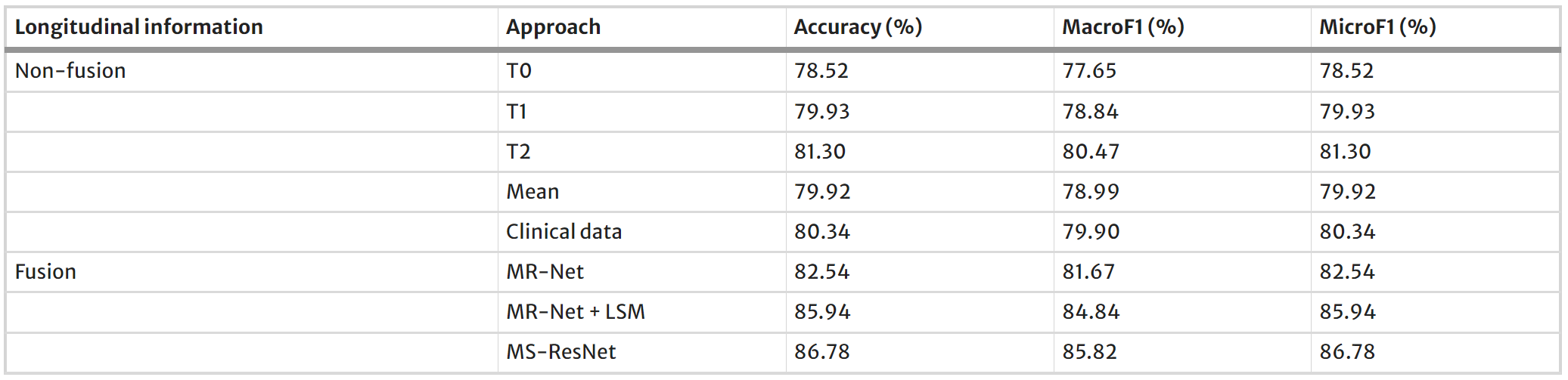 Directly integrating the deep features from the three periods via MR-Net leads to a moderate improvement in classification accuracy, although the effect is not particularly pronounced.