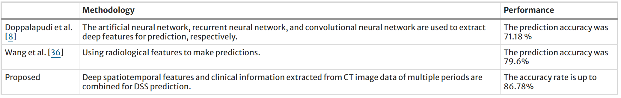 Table 4.2 Comparison of the methodology and performance of our proposed model with the state-of-the-art studies