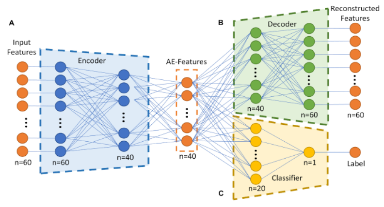 As shown in Figure 2, the semi-supervised auto-encoder has three main components: the encoder, the decoder, and the classifier. The encoder converts the brain input features into latent space. To minimize the risk of overfitting, a Gaussian noise was induced to 20% of the input features.