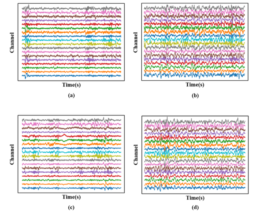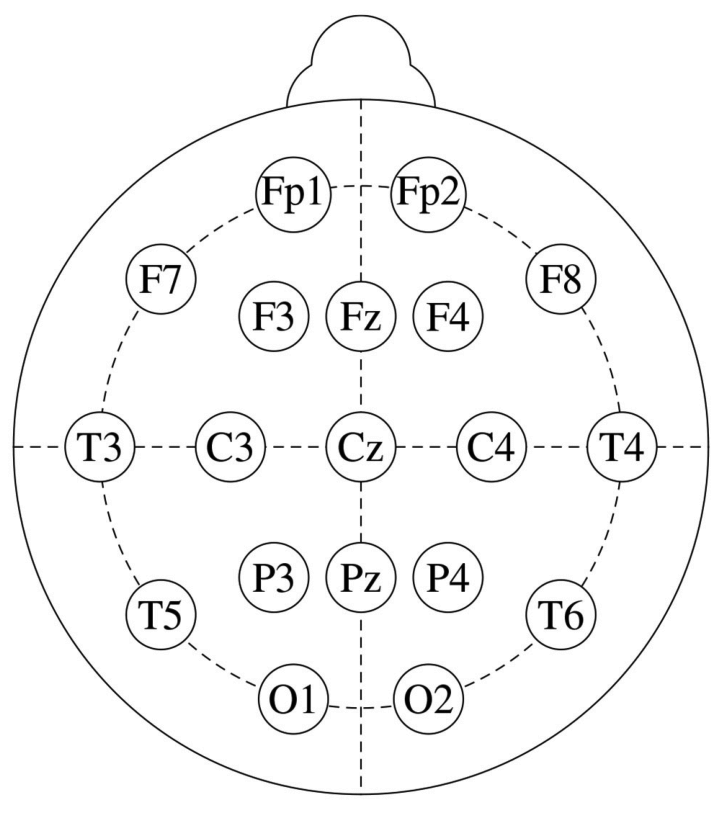 The standard 10-20 setup of EEG electrodes is illustrated in Figure 2, where "10" and "20" refer to specific distances between adjacent electrodes. Figure 3 displays a signal recorded during an epileptic seizure. This signal is notably complex, posing a challenge even for clinical experts in identifying the signal changes before an oncoming seizure. An epileptic EEG signal comprises four distinguishable phases as shown in Figure 4. The phase where the seizure occurs is termed as the ictal phase. Preceding the ictal phase is the preictal phase, exhibiting signs of an impending seizure. Following the ictal phase is the postictal phase. Between the postictal and preictal phases, where the brain activity returns to normal called interictal phase. Public EEG databases serve as valuable resources for developing new prediction methods. Among these, the MIT Boston Children’s Hospital (CHB-MIT) dataset is one of the most widely used, including data from 23 patients with 844 hours of sEEG recording at 256Hz sampling rate and 163 seizure episodes (Shu et al. 2023). In the CHB-MIT dataset, all seizure events are annotated by clinical experts.