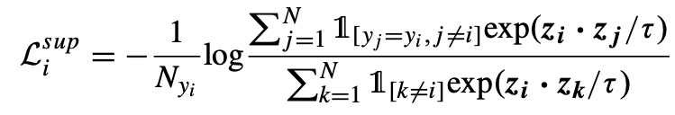 , where Nyi reflects the samples that have the same label as yi in a batch, zi (i ∈ {1,2,..., N}) is the embedding vector of input xi in the projection space (Zhao et al. 2022).
