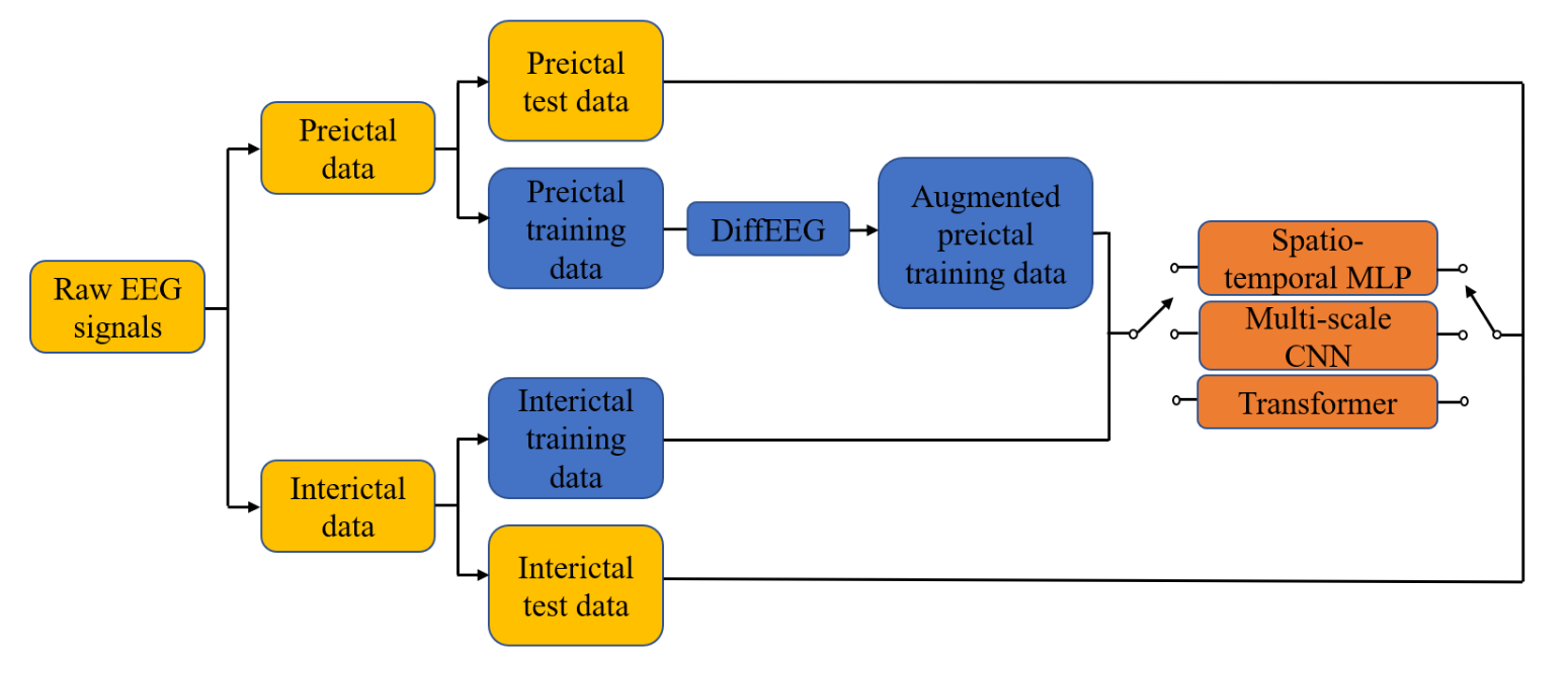 However, there are significant challenges in the pursuit of creating reliable prediction models. Patient EEG data is complex and unique for every patients, making it challenging to create generalizable models. Furthermore, one major problem for deep learning-based prediction models is the difference in the recorded length of different seizure phases, where interictal periods usually significantly surpass preictal and ictal durations within EEG datasets, constitutes a substantial data imbalance problem. Moreover, achieving accurate predictions while avoiding false alerts is challenging. Striking a balance between sensitivity and minimizing false alarms is essential for the success of the prediction models. Additionally, the size of available datasets to train prediction models is limited.