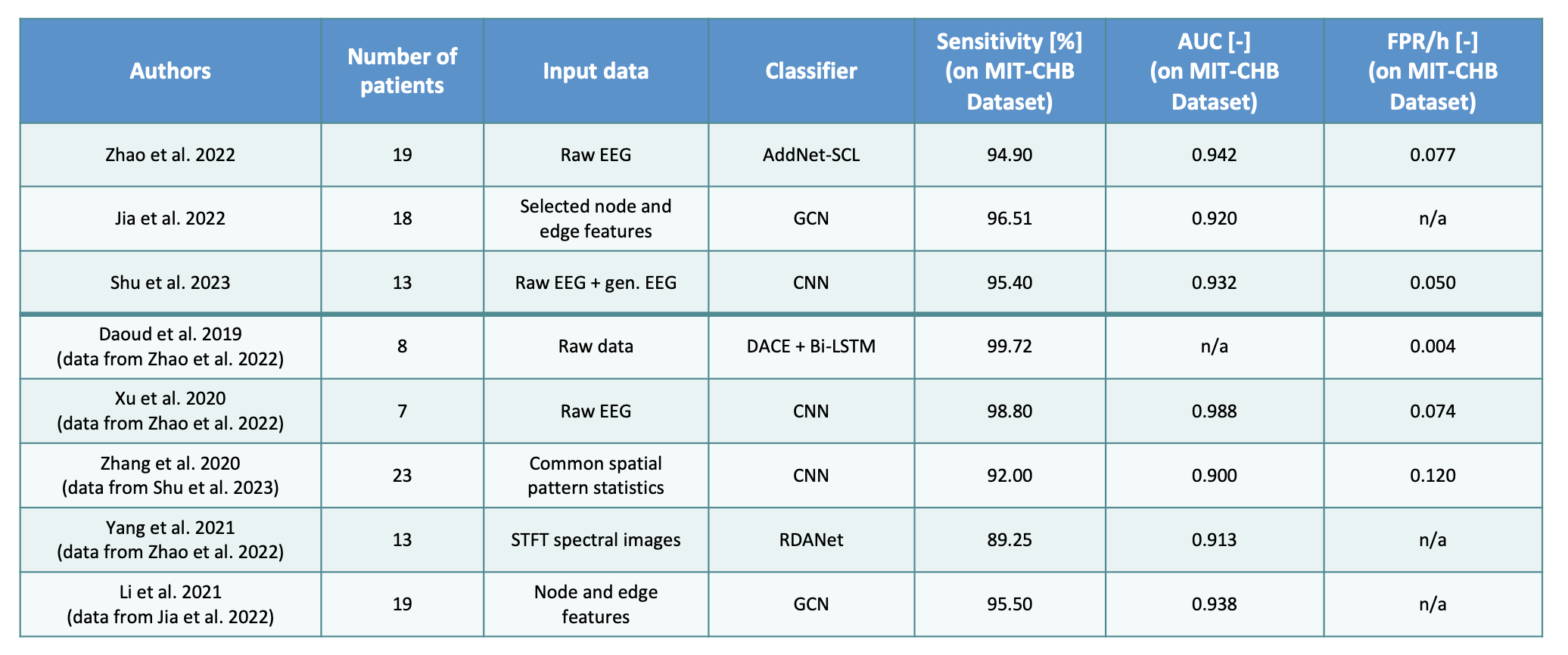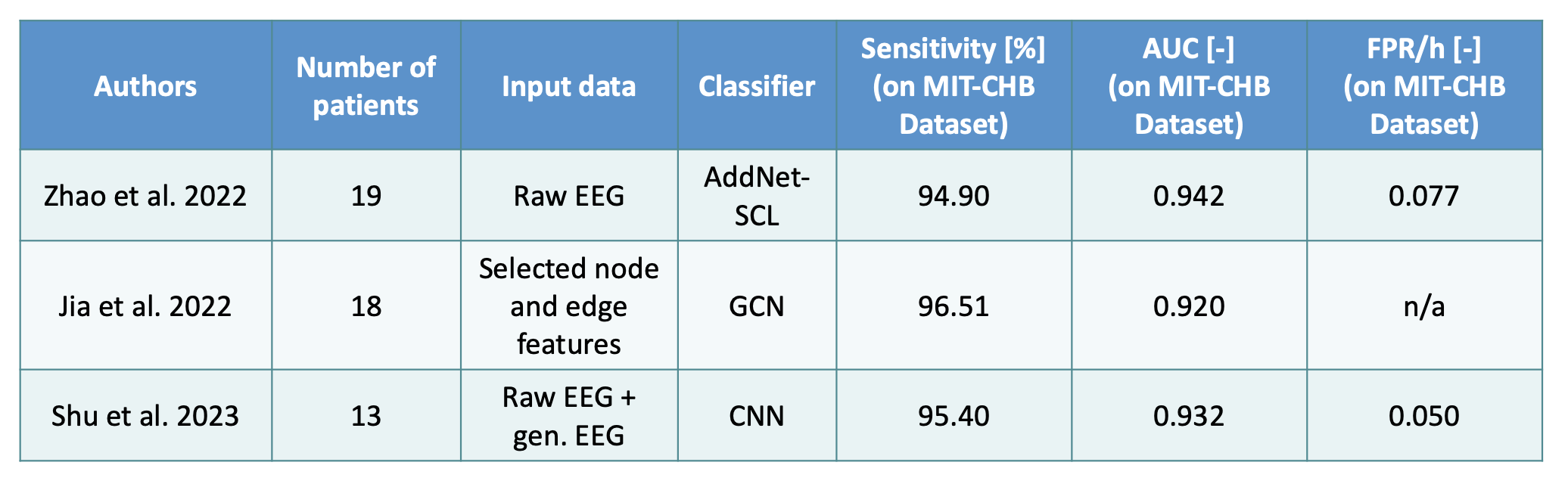 Table 3 shows a further comparison with other existing epileptic seizure prediction models performances on the MIT-CHB dataset. As it can be seen, there are models with better or worse performance, but it is important to note again, that for instance, the selected patients are different, one method used data from only 7 patients, while another employed the complete MIT-CHB dataset consisting of 23 patients.