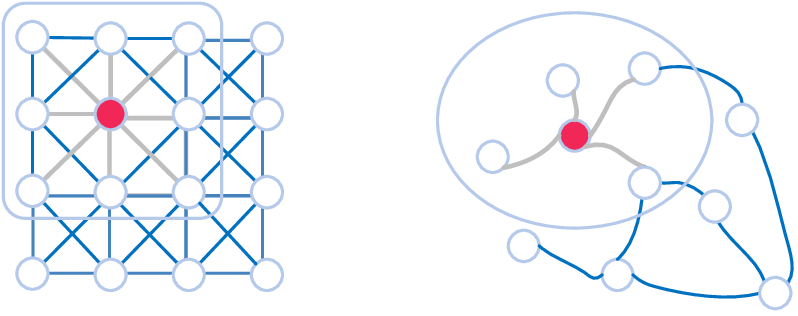 In the second paper, Jia et al. 2022 introduce a prediction model also focusing on minimizing computational complexity for wearable devices while offering insights into the localization of seizure focus within the brain. The cornerstone of their approach is a Graph Convolutional Network (GCN), which operates in a non-Euclidean space, allowing better representation of structural connections within the dataset compared to a CNN, which operates in Euclidean space. The graphs in a GCN consists of node features and edge features connecting the nodes. Figure 10 illustrate the difference between CNN with grid structured data and GCN.