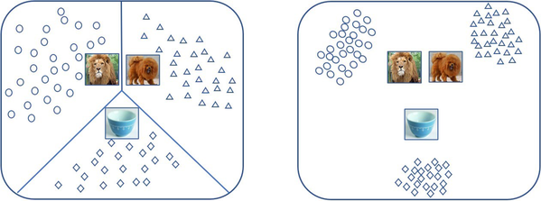 Besides the use of additive convolutions, Zhao et al. 2022 innovative approach introduce Supervised Contrastive Learning (SCL), a technique used for the first time in epileptic seizure prediction. SCL assists in defining the boundaries between different classes and especially useful for linear classifiers in case of hard distinguishable boundaries. This technique employs a supervised contrastive loss (Equation 1) that effectively pushes samples from different classes apart from each other while grouping samples from the same class together. Figure 7 depicts the difference between classification with cross-entropy loss only and pretraining using SCL.