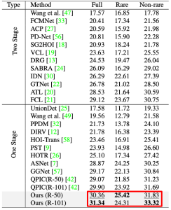 - The one-stage approach uses transformer architecture to detect all the components of an HOI triple directly. However, not all object action pairs are meaningful and there is a challenge of the simple query to decode all the rich elements of an HOI triple.