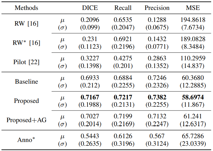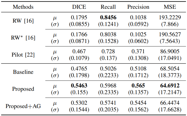 - Proposed+AG: The proposed method with the addition of Attention Gates.