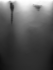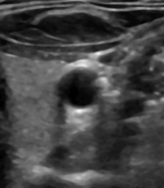 Highly reflective tissue or materials reduce the amount of transmitted sound waves that would pass to tissue more distant to the transducer. This leads to so-called shadowing regions that are particularly prune to noise signals coming from the surrounding tissue. Since sound waves will be dampened while passing through any kind of material, even a body with equal impedance will produce an image with a continuously darker growing shadow. This effect is called downward attenuation and can also be seen in the above images that both get darker in downward direction. An example for shadows can be seen inside the blue coloured circles in the left image.
