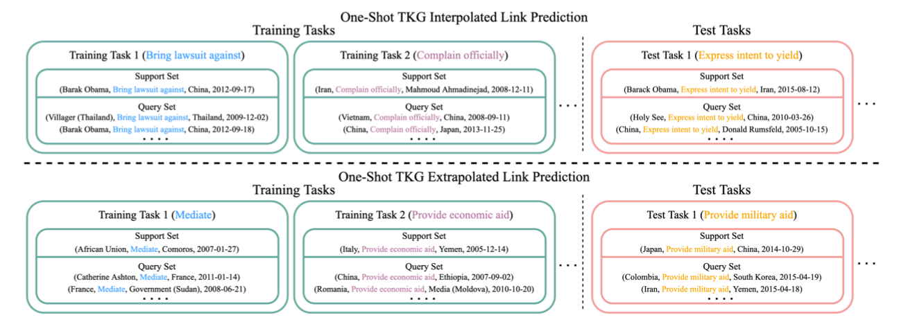 [2] Ding, Z., He, B., Wu, J., Ma, Y., Han, Z., & Tresp, V. (2023). Learning Meta-Representations of One-shot Relations for Temporal Knowledge Graph Link Prediction. arXiv preprint arXiv:2205.10621v2 [cs.LG], submitted on 24 May 2023. https://arxiv.org/pdf/2205.10621.pdf