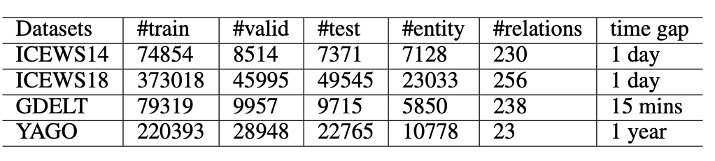 The basic idea behind this model is that temporal facts in knowledge graphs evolve over time.[3] Notably, many facts exhibit recurring patterns along the timeline, such as occurrences of economic crises and diplomatic activities.More specifically, the paper argues that over 80% of all the events throughout the 24 years of ICEWS data (i.e. 1995 to 2019) have already appeared during the previous time period. This insight suggests that a model can gain valuable insights from historical data, leveraging known facts to enhance its learning capabilities.