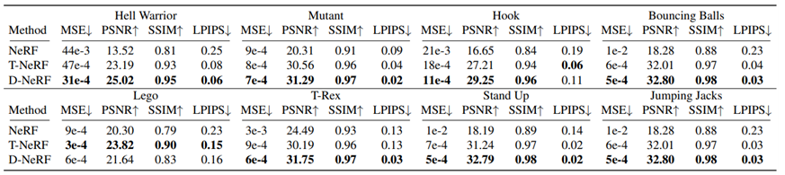Table 2. D-NeRF quantitative results [2].
