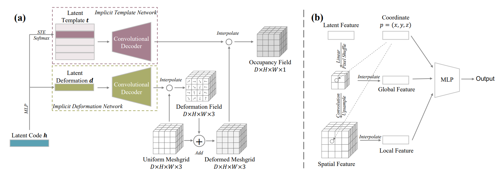 Figure 13. (a) Overview of ImplicitAtlas, (b) the architecture of the decoder [5].