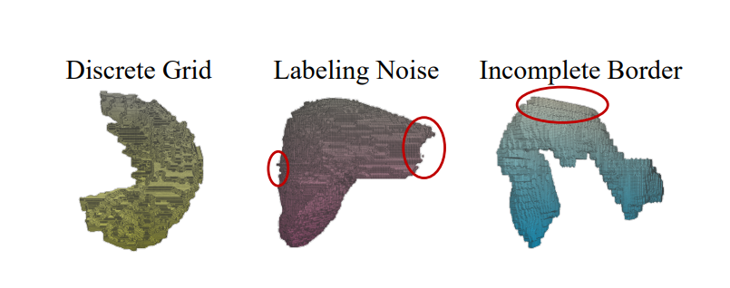 Shape modeling in medical domain has been recently performed with different representations of the shapes - both explicit and implicit [4] with popular representations being signed distance fields, occupancy grids and implicit representations like Neural Fields. Approaches chosen in research have to deal with lack of data or noisy records and annotations in medical domain as we saw in Fig. 1. DeepSDF mentioned in the Fig. 4 has also served as a base for one of Neural Fields approaches described in Methodology.