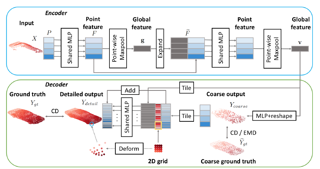 - Use folding-based decoder with 3 MLPs to generate point cloud of a better resolution.