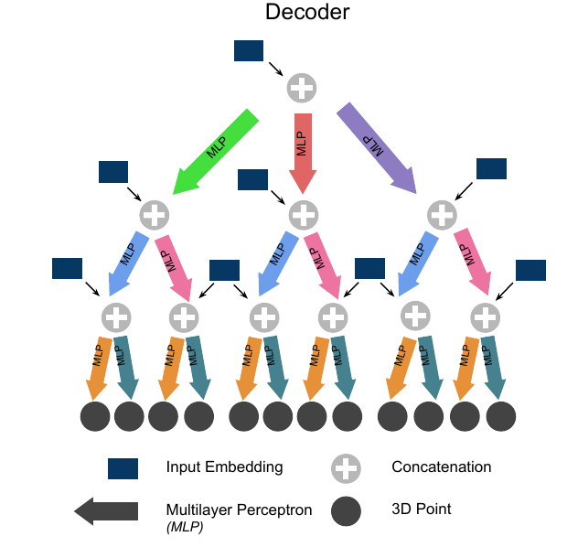 Key idea: Model point cloud topology in decoder using MLPs arranged in a tree-like structure
