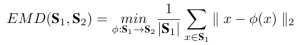 Earth Mover’s Distance, on the other hand, finds the optimal bijection between 2 point clouds: