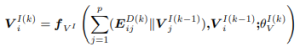 Now pass this concatenated vector sum and previous iteration instance graph’s ith node vector (V_i^{I(k-1)}) through a NN(f_{V^I}) to get ‘m’ dimensions refined node vector.