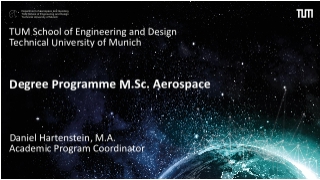 Below are the slides from the information session about the degree programs M.Sc. ESPACE - Earth Oriented Space Science and Technology and M.Sc. Aerospace.