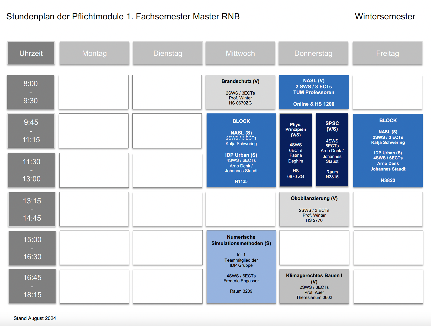 Der Studienplan der ersten beiden Semester ist strikt vorgegeben vorgegeben und beinhaltet alle Pflichtmodule der FPSO: