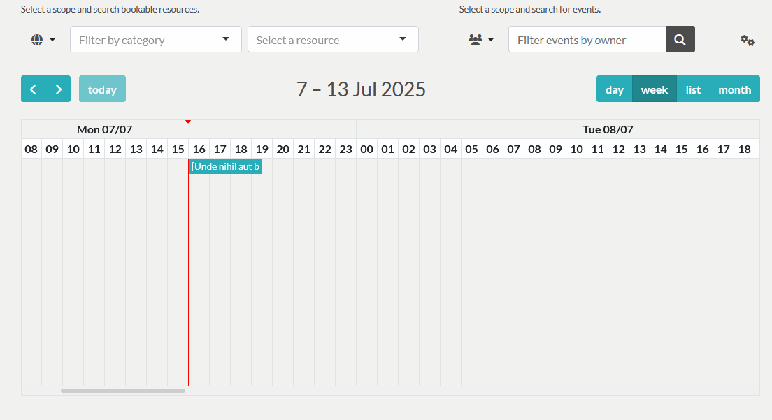 2. Filter for booking visibility scope, category and then select the correct resource.