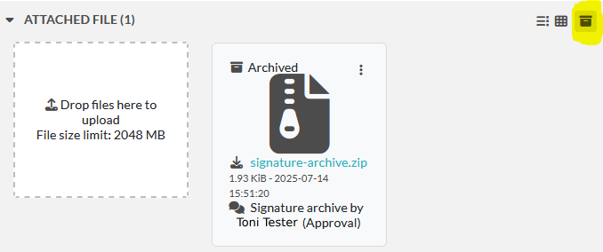 - Click the "Show archived" button to display hidden files, including the signature.