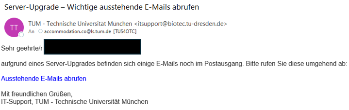Wenn Sie auf die Nachricht reagiert haben, bitte umgehend Ihr TUM-Passwort ändern.