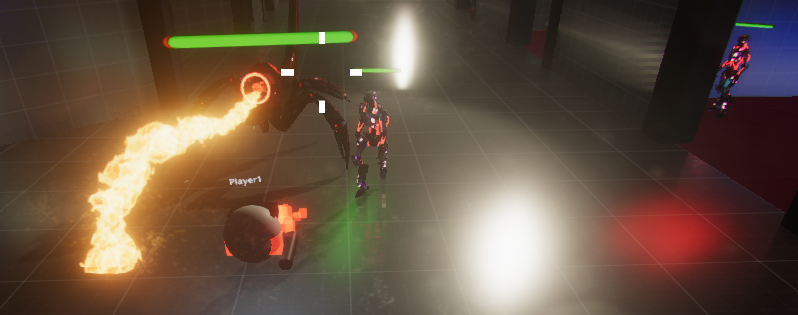Some changes to gameplay balancing were introduced, such as a significantly higher movement speed and somewhat higher attack rate to make crawlers feel more agile and better equipped to evade enemies if necessary, as well as increasing the level of excitement a player experiences. To mitigate the fire rate somewhat, damage numbers for the crawler weapons were tweaked. ((Artjom:)) Additionally, more enemies and a second enemy type were added so the average player would actually need the help of his fellows and the master. On top of that, the level now contains a boss with more health and more range.
