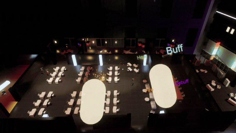 Further improving master visuals and following the style set with the new particle systems last week, buff and debuff rays now glow more neon-like, the casting hand emits fancy particles as well and the entire master starts glowing when applying a buff or debuff. In addition, there is now a helper ray indicating the aiming direction of the rays in case the player fails to aim at crawlers/enemies properly. Some less visible changes and tweaks have been applied to the radial menus, hand visualisations, particle systems and materials in general.