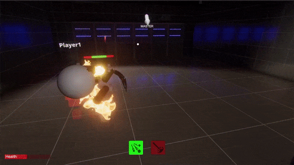 As the master player was way overpowered before, usage of abilities is now limited by sparse resources. Both buff/debuff rays and physics-based abilities now use resources that are either regenerated over time or are picked up by crawlers. As of now, this means that a fully charged master can buff and debuff for 5 seconds and throw 3 heal orbs and fire balls before needing to recharge. The amount of available resources is intuitively represented in the size of the ability pool or the casting hand.