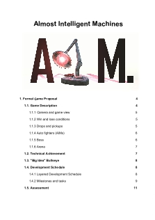Almost Intelligent Machines (A.I.M.) is a multiple-stage boss-battle. The player controls a legion of bots, that are needed to fight said boss, of which the player himself can only control one at a time. The other bots need to be assigned to sub-tasks in defeating the enemy. During that, the latter can corrupt them and either make them useless or even fight against the player.