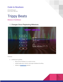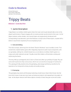 I loved the presentation that you gave during our milestone meeting. It was definitely a unique one and I enjoyed listening to it. The game idea is also great and one of the things I look forward to is the fact that combos will be upgrading the music and visuals, which I think will hook the player into playing it more. The whole concept is overall great and I really can't wait to see the game in action in the coming months.