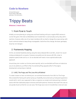 That said, I also got the impression that some of the technical goals, especiallywith  sound mapping (which can be quite tricky), custom shaders, and motion tracking in your own engine, are very ambitious. It feels like the rhythmic gameplay combined with the DIY music and shader approach already offers more than enough to fpcus on for a strong, immersive experience and would still hit your bullseye goals.