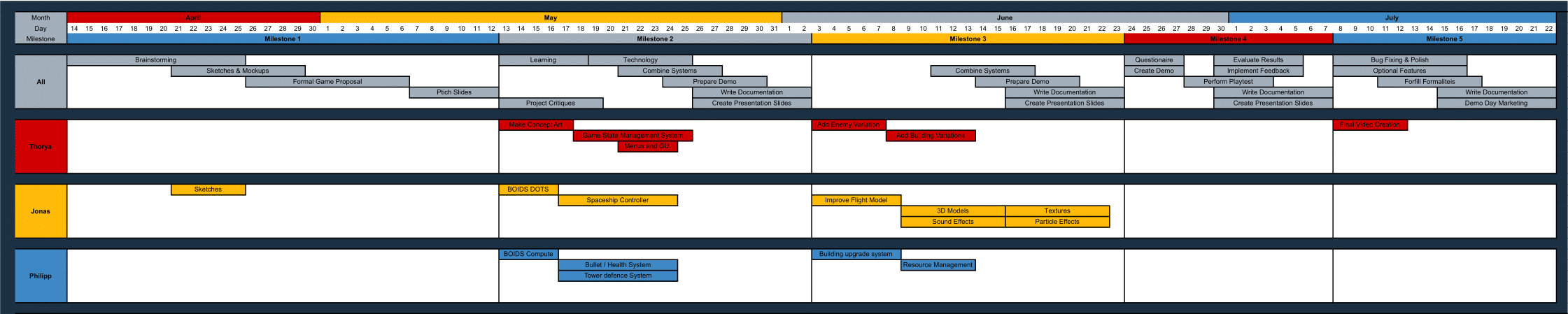 - Maybe a little too many aspects with the 3D tower defense, swarm AI and a freely roaming player in my opinion. Might need to reduce and focus on one or two of the aspects at the beginning like cutting out the space shooter mechanic from the functional minimum.